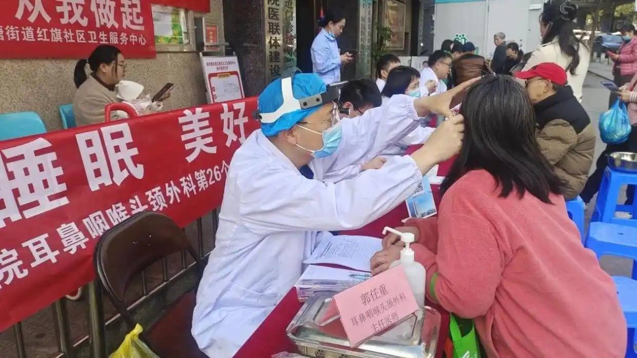 3月13日,医院耳鼻咽喉头颈外科牵头,联合神经内科、呼吸科专家来到侯家塘街道红旗社区卫生服务中心,为居民开展免费睡眠健康服务。现场提供鼾症筛查、嗜睡程度测评,并根据检查结果给出诊疗建议。义诊中医生发现,不少平时觉得自己“睡得香、呼噜打得响”的居民,其实存在睡眠呼吸风险。大约四成自我感觉睡眠良好的居民,检查后发现有中重度阻塞性睡眠呼吸暂停问题。专家提醒,打鼾声音过大并不是睡得好,反而可能是气道不通畅的危险信号。当天筛查中发现的高危居民,已经通过医院绿色通道,转到睡眠门诊和鼾症门诊进行进一步检查和治疗。